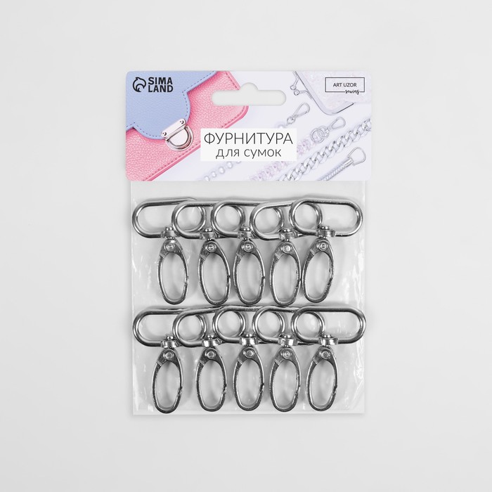 Карабин металлический, 45×32 мм / 25×2.7 мм, 10 шт., цвет серебряный — Характеристики