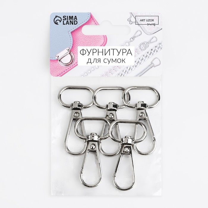 Карабин металлический, 46×25 мм / 20×3 мм, 5 шт., цвет серебряный — Характеристики