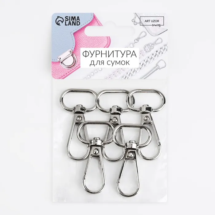 Металлический карабин предназначен для крепления ремней, ручек или декоративных элементов к сумке. Изготовлен из прочного металла, имеет гладкую поверхность и элегантный вид, что делает его не только функциональным, но и стильным элементом фурнитуры.