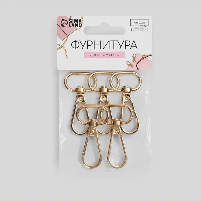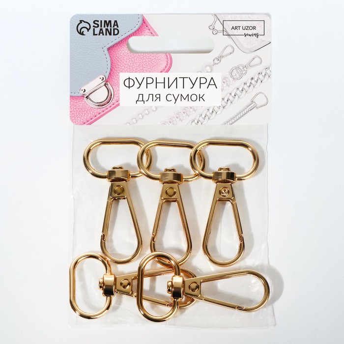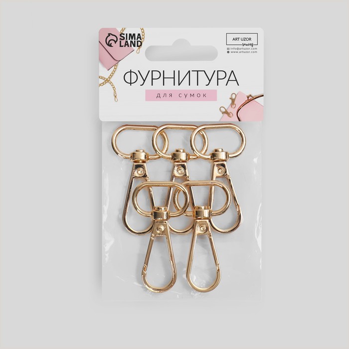 Карабин металлический, 46×25 мм / 20×3 мм, 5 шт., цвет золотой — Характеристики