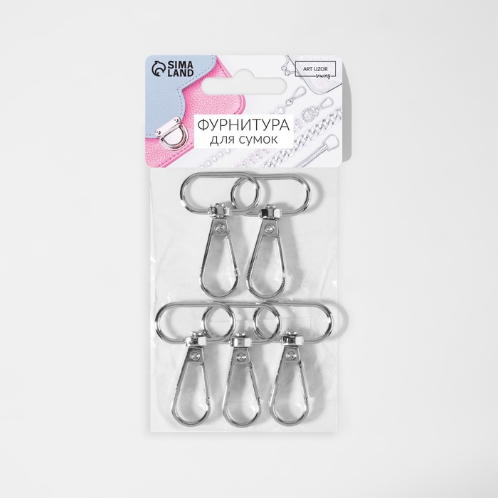 Карабин металлический, 46×30 мм / 25×2.5 мм, 5 шт., цвет серебряный