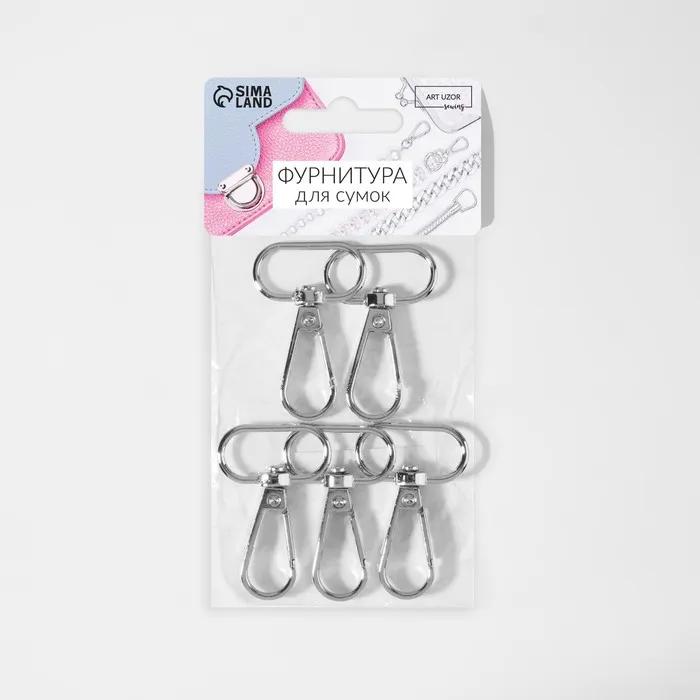 Карабин металлический, 46×30 мм / 25×2.5 мм, 5 шт., цвет серебряный — Характеристики