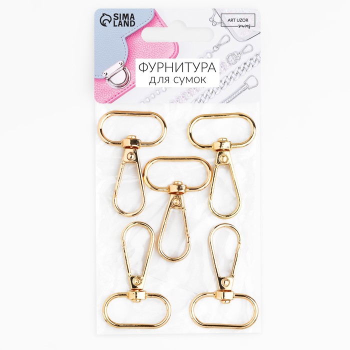 Карабин металлический, 46×30 мм / 25×2.5 мм, 5 шт., цвет золотой — Характеристики