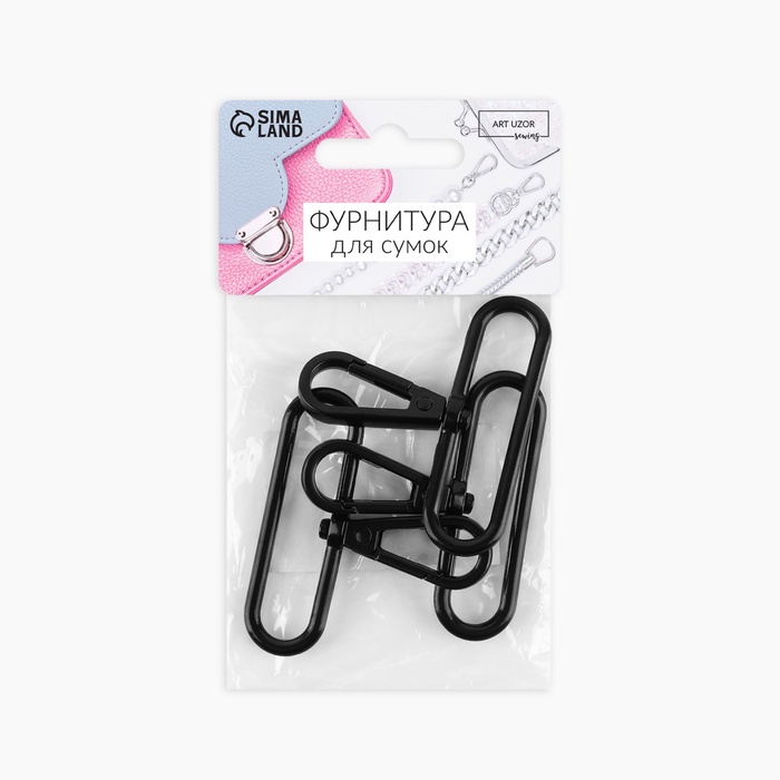 Карабин металлический, 49×57 мм / 50×3.5 мм, 5 шт., чёрный матовый — Характеристики