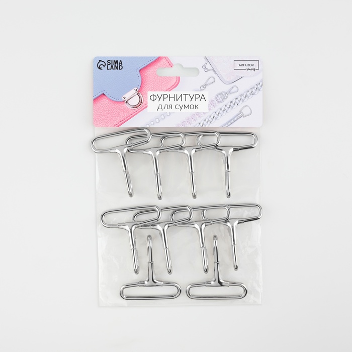 Металлический карабин предназначен для крепления ремней, ручек или декоративных элементов к сумке. Изготовлен из прочного металла, имеет гладкую поверхность и элегантный вид, что делает его не только функциональным, но и стильным элементом фурнитуры.