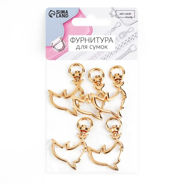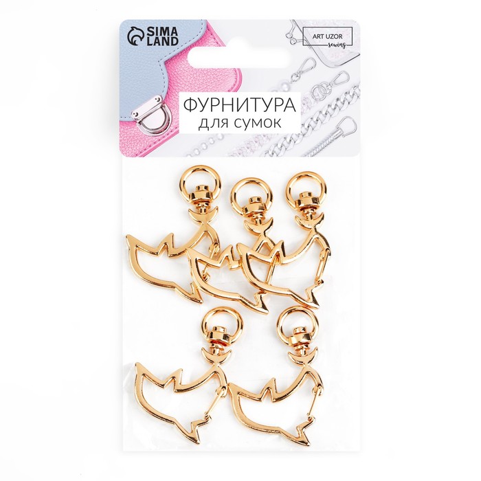 Карабин металлический «Дельфин», 43 × 28 мм / 8 × 2,2 мм, 5 шт, цвет золотой — Характеристики