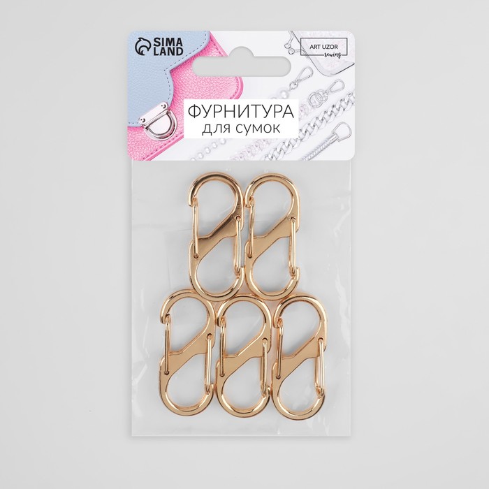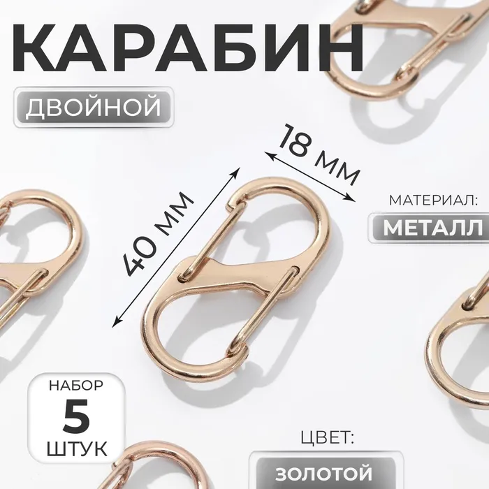 Золотистые металлические двойные карабины в наборе по 5 штук — это практичные крепежные элементы для создания брелоков, ключниц и аксессуаров. Их конструкция обеспечивает надежное соединение, а яркий золотой цвет добавляет изделиям стильности и элегантности. Размер 40×18 мм делает их универсальными для различных рукодельных проектов и украшений.
