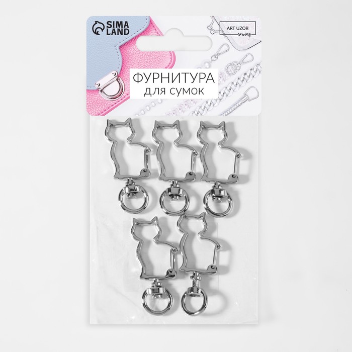 Карабин металлический «Кошка», 42×17 мм / 8×2.2 мм, 5 шт., цвет серебряный — Характеристики