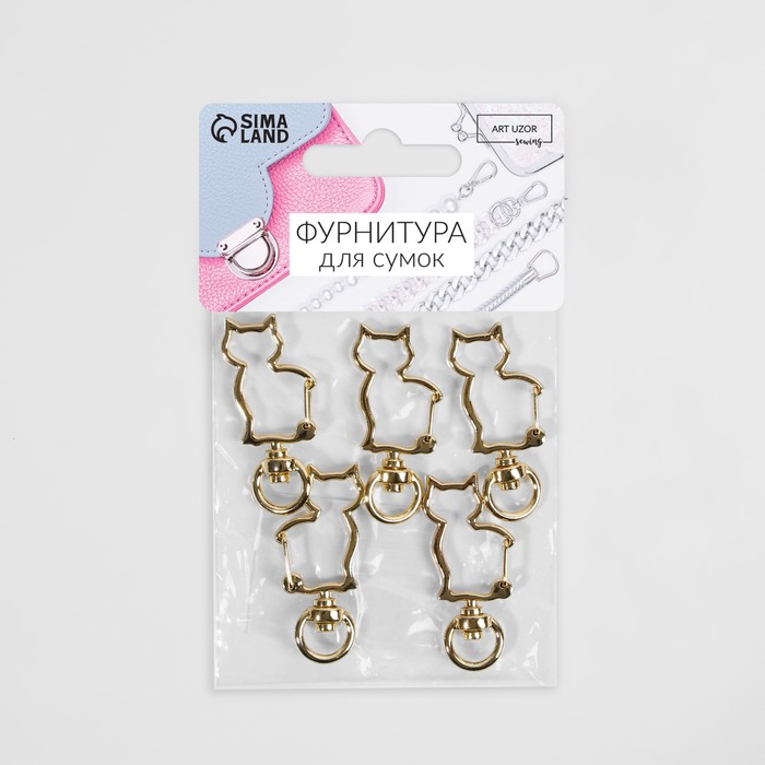 Карабин металлический «Кошка», 42×17 мм / 8×2.2 мм, 5 шт., цвет золотой — Характеристики