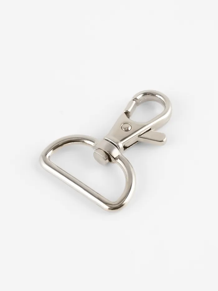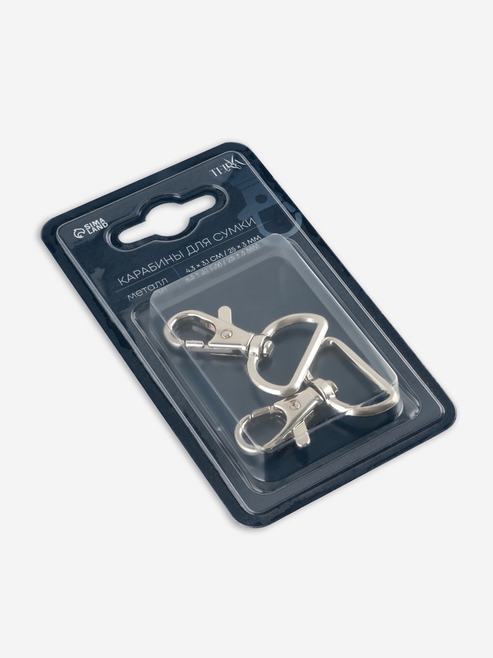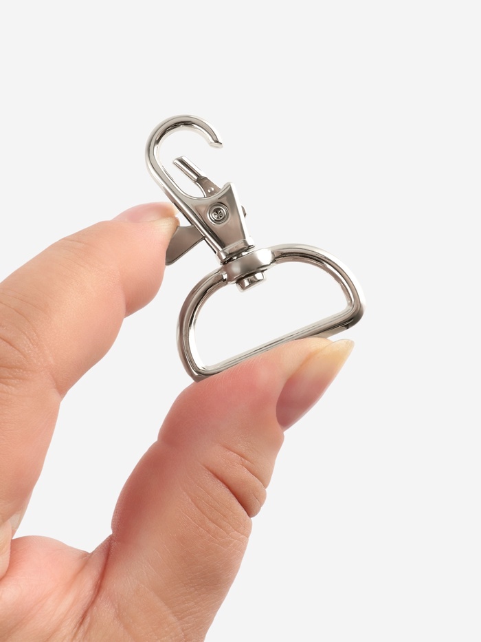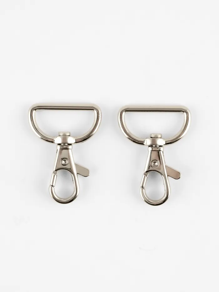 Металлические карабины в серебристом цвете — надёжная фурнитура для сумок, рюкзаков, ремней и брелоков. Их простая форма делает крепление удобным и понятным, а универсальный дизайн гармонирует с любыми материалами и стилями. Карабины подходят как для ремонта аксессуаров, так и для самостоятельного пошива изделий.