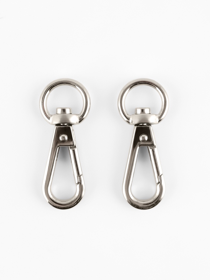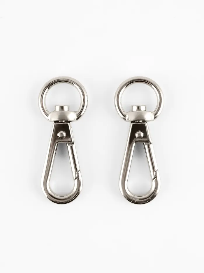 Металлические карабины в серебристом цвете — практичная фурнитура для сумок, рюкзаков, ремней и брелоков. Простая форма делает их удобными в использовании, а универсальный дизайн подходит как для ремонта, так и для пошива новых аксессуаров. Небольшой вес не снижает прочности, обеспечивая надёжное соединение деталей.