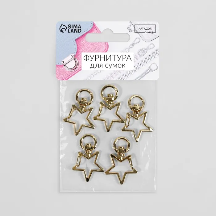 Карабин металлический «Звезда», 34×24 мм / 8×2.2 мм, 5 шт., цвет золотой — Характеристики
