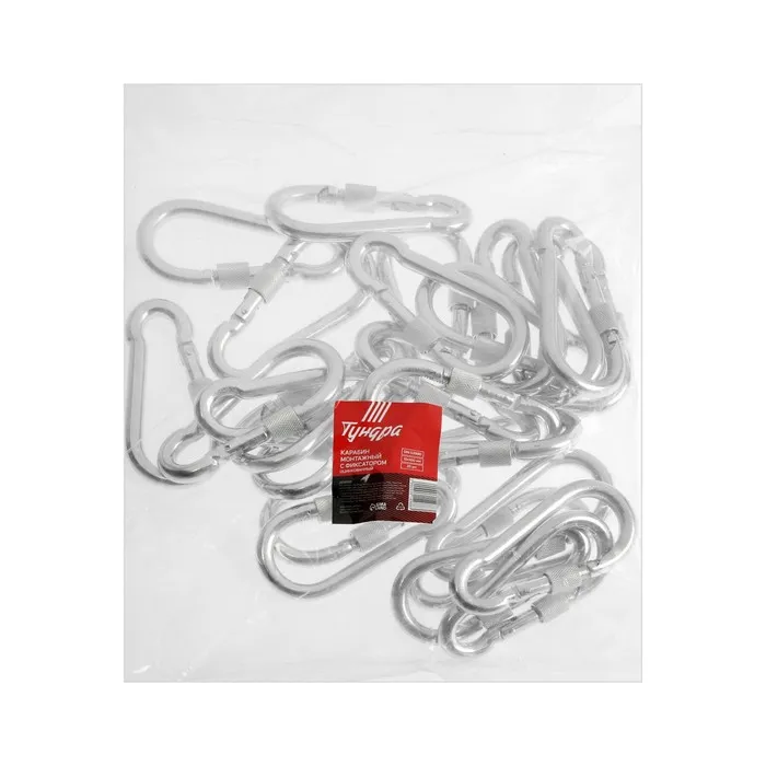 Карабин монтажный с фиксатором ТУНДРА krep применяется для быстрого, простого, надежного, разъемного соединения между собой цепей, тросов, веревок, ремней и т.п., а также для крепления их к различным конструкциям и основаниям.
