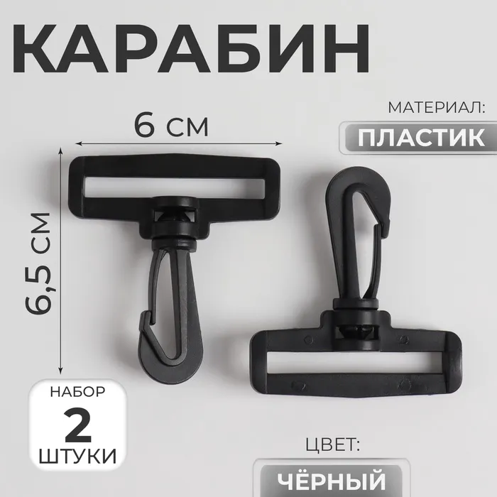 Карабин пластиковый, нагрузка до 35 кг, 60×65 мм / 50×5 мм, 2 шт., чёрный — Характеристики