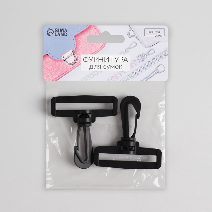 Карабин пластиковый, нагрузка до 35 кг, 60×65 мм / 50×5 мм, 2 шт., чёрный