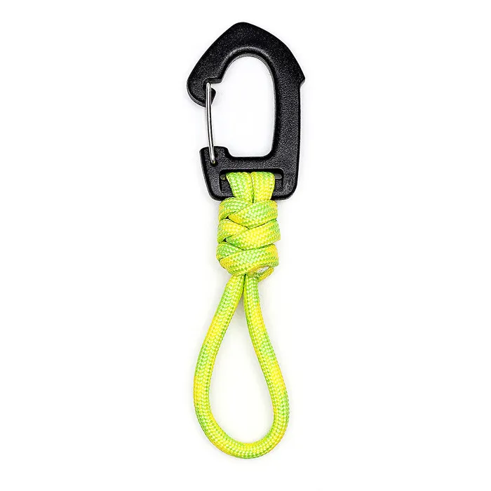 Карабин туристический, с паракордом, неон - зеленый, 11 см