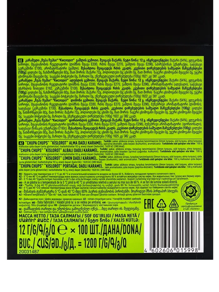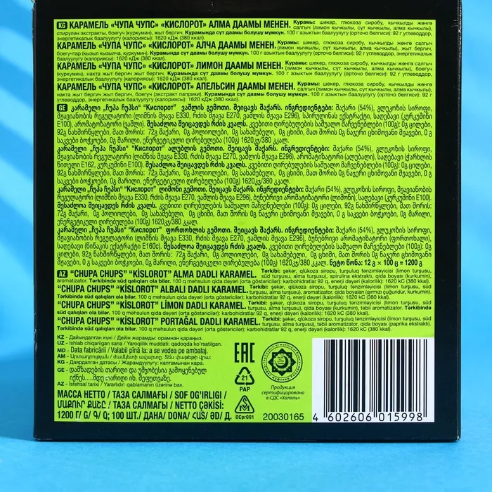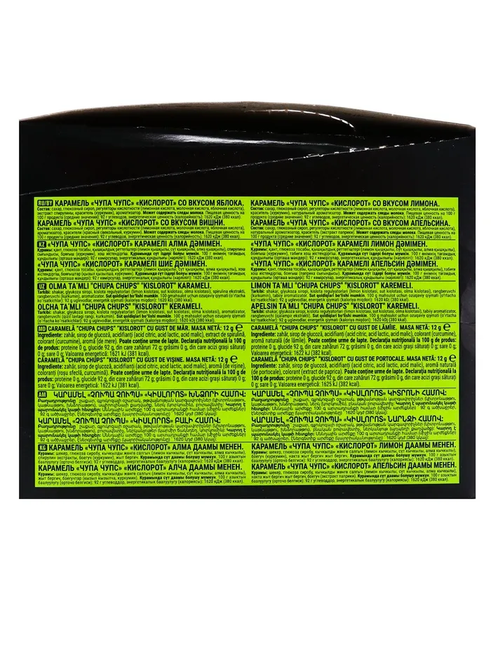 Карамель Chupa Chups "Кислорот" ассорти — это карамель для любителей кислых сладостей! Эти яркие и аппетитные леденцы предлагают уникальное сочетание насыщенных вкусов, которые подарят вам незабываемые моменты наслаждения.