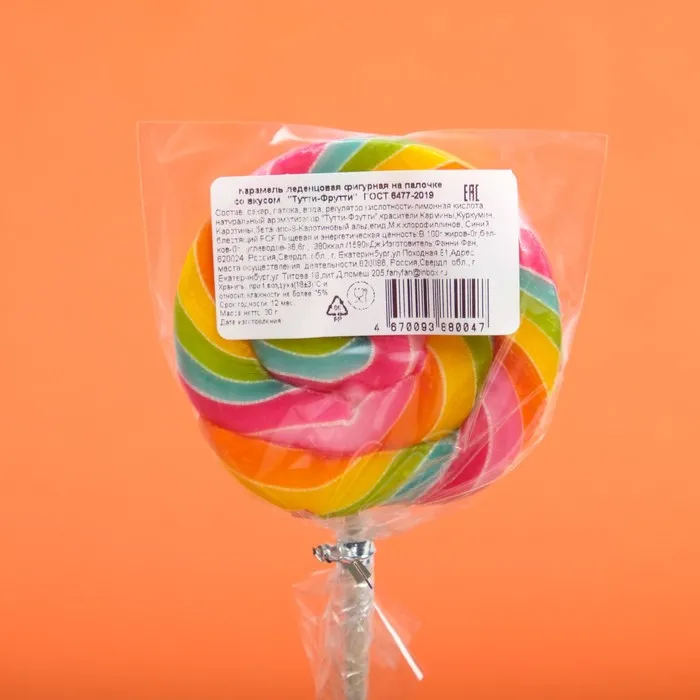 Идеально подходящий для детей и взрослых, этот леденец станет отличным угощением на праздниках, пикниках или просто радостным моментом в повседневной жизни. Его компактный размер делает его удобным для перекуса в любое время и в любом месте. Яркая упаковка привлекает внимание и создаёт праздничное настроение.