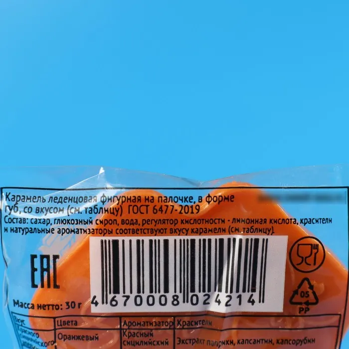 Карамель леденцовая «Губы» на палочке, 30 г — Характеристики