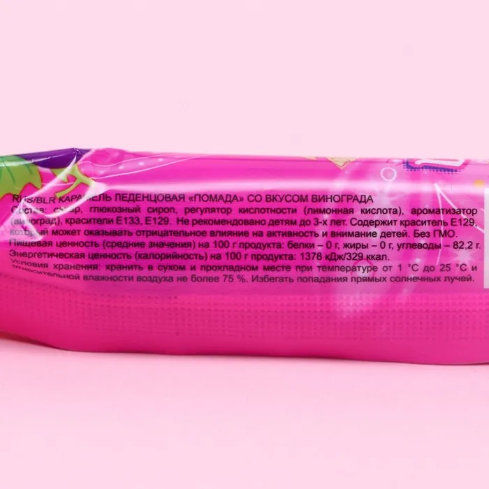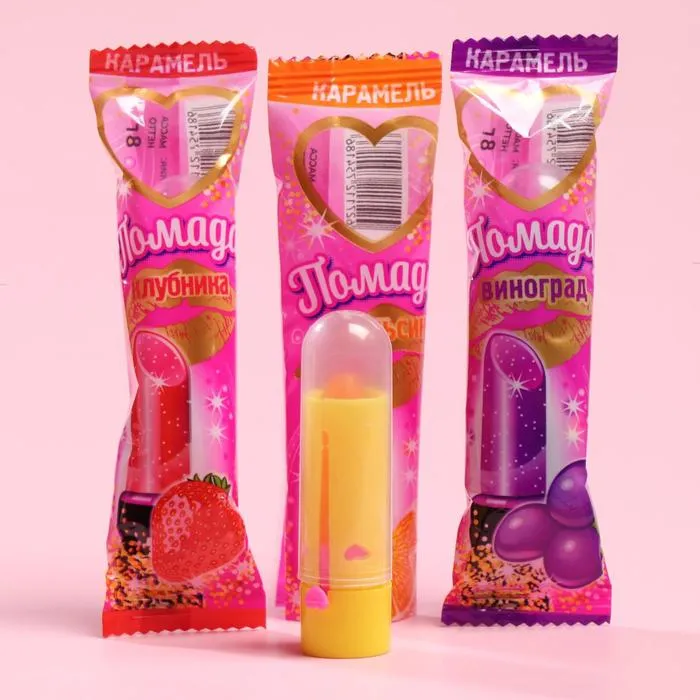 Леденцовая карамель «Помада» – это оригинальное лакомство, которое сочетает в себе яркий вкус и забавный дизайн. Конфета выполнена в форме разноцветных помад, что делает ее не только вкусной, но и визуально привлекательной. Основной аромат этой карамели – сочный виноград, который мгновенно вызывает ассоциации с летними днями и свежестью. Вкус насыщенный и сладкий, с приятной кислинкой, которая придает лакомству особую пикантность. Благодаря своей форме, «Помада» становится не просто конфетой, а настоящим аксессуаром, которым можно "накрасить" губы перед тем, как насладиться вкусом.
