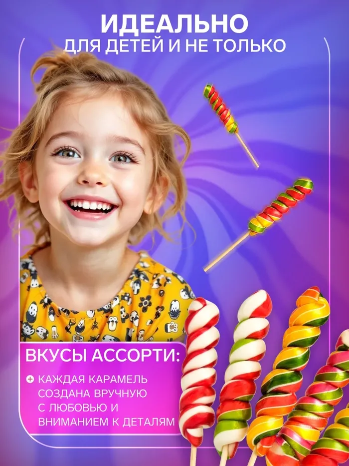 Эти леденцы не только восхитительны на вкус, но и обладают красивым спиралевидным дизайном, который придаёт им особый шарм.
