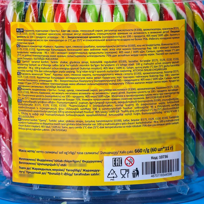 Карамель леденцовая «Трость», 11 г — Характеристики
