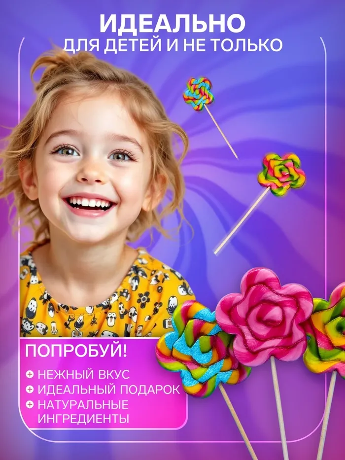 Леденец - это отличный, оригинальный подарок. Леденцы на палочке произведут WOW эффект на именинника и гостей, украсят любой десерт или могут стать оригинальным подарком ребенку. Подойдёт в качестве украшения - леденцы на торт и для украшения коктейлей. Леденцы на палочке, отличное угощение для маленьких и больших любителей сладостей. Упакован в индивидуальную пузырчатую пленку. Длина палочки позволяет их использовать как декор в качестве украшения торта.