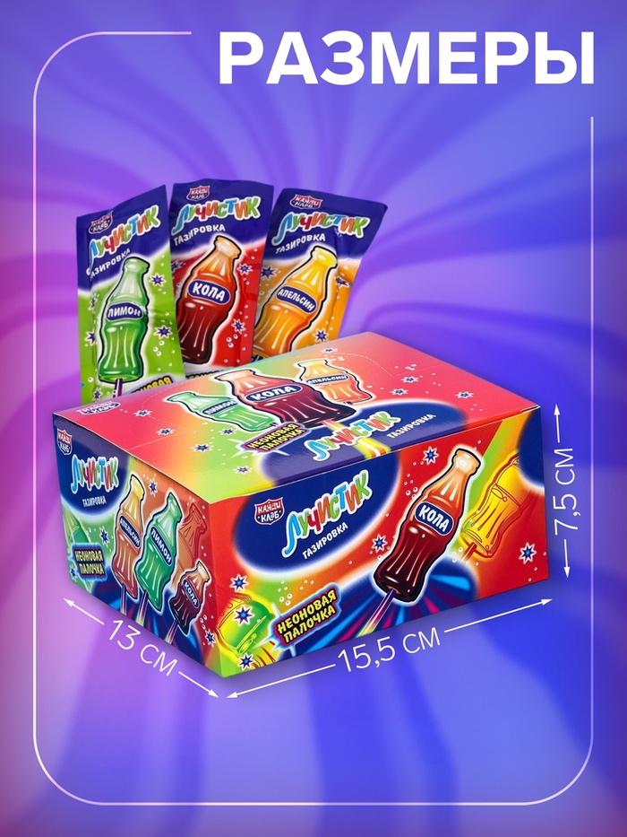 Карамель на неоновой палочке «Лучистик», газировка, 10 г — Характеристики