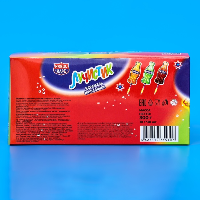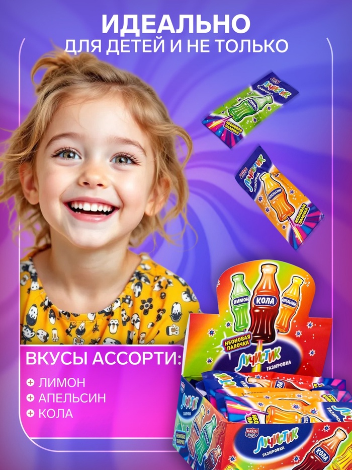Уникальный вкус газировки и неоновая палочка не только придает карамели стильный вид, но и удобно держать в руках, что делает ее отличным угощением для пикников, праздников и любых веселых событий. Каждая карамелька «Лучистик» — это радость, готовая подарить вам настроение и заряд положительной энергии. Погрузитесь в мир ярких вкусов и воспоминаний с этой уникальной карамелью, которая подарит незабываемые мгновения наслаждения и веселья!