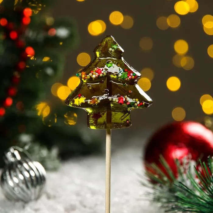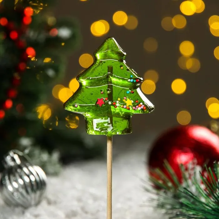 Карамель "Ёлочка" обладает насыщенным вкусом и приятной текстурой, что делает её идеальным выбором для сладкоежек, как маленьких, так и больших. Подарите себе и своим близким кусочек новогоднего волшебства с этой яркой, вкусной и стильной карамелью на палочке!