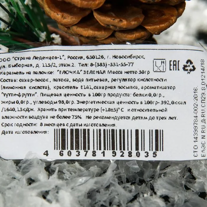 Карамель на палочке "Ёлочка", зелёная, 30 г — Характеристики