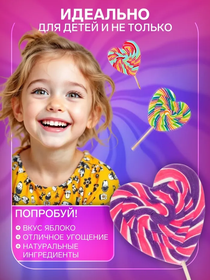 Карамель на палочке «Лолли Сердце Биг», микс 140 г — Характеристики