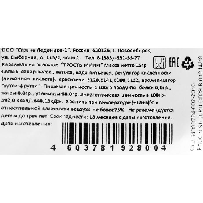 Карамель на палочке новогодняя "Трость мини", 15 г — Характеристики