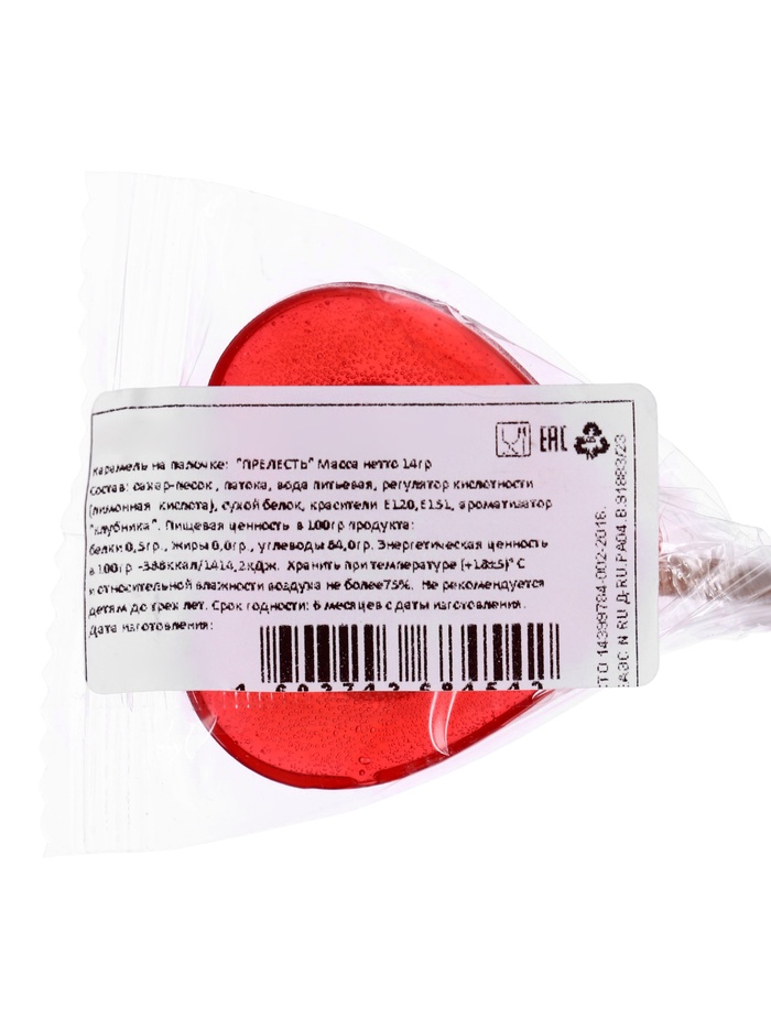 Эта карамель — для маленьких, но трогательных знаков внимания. Её нежный клубничный вкус и тематическое название «Прелесть» делают её милым дополнением к подарку на 14 Февраля. Небольшой размер и палочка позволяют легко вручить её, даже если вы дарите что-то более серьёзное.
