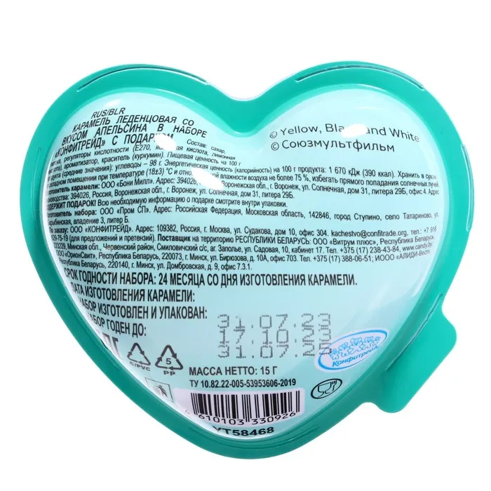 Карамель в пластиковом сердце «Чебурашка», с брелоком, 15 г — Характеристики
