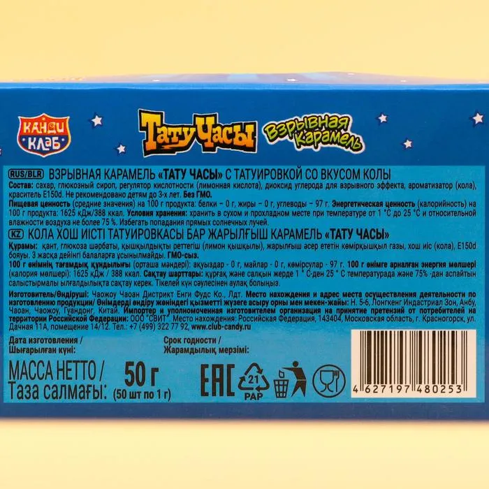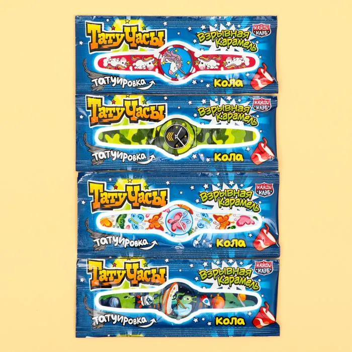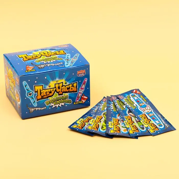 Сладости с временными татуировками понравятся вашим детям так же, как нравились вам. В коробке находится сразу 50 карамелек, каждая из которых идет с уникальной татуировкой.