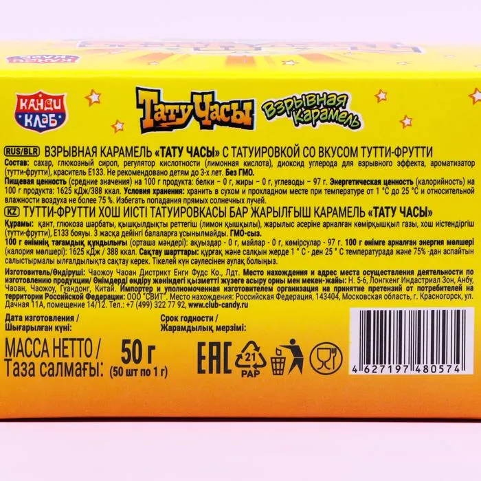 Сладости с временными татуировками понравятся вашим детям так же, как нравились вам. Внутри каждой упаковки вы найдете уникальную татуировку. Используйте карамель для украшения стола или развлечения детей на вечеринке, дне рождении или любом другом празднике.