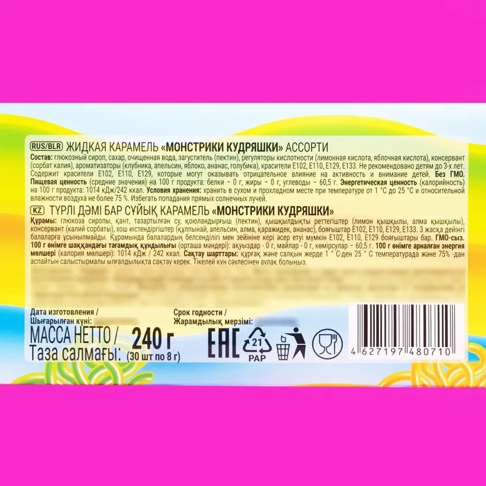 Карамель жидкая «Монстрики кудряшки», ассорти, 8 г — Характеристики