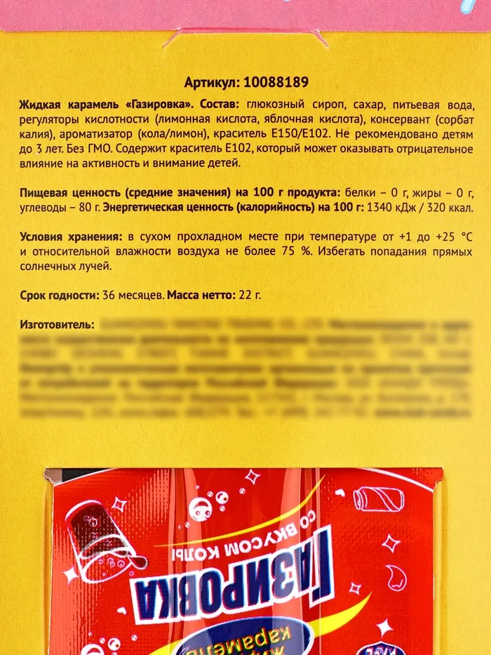 Карамель жидкая под газировку «Немножко сладкого», 22 г. — Характеристики