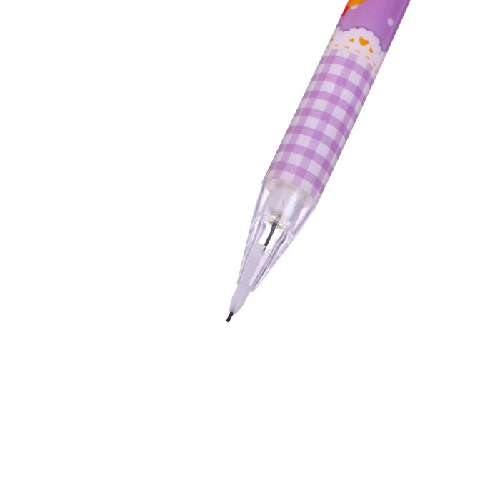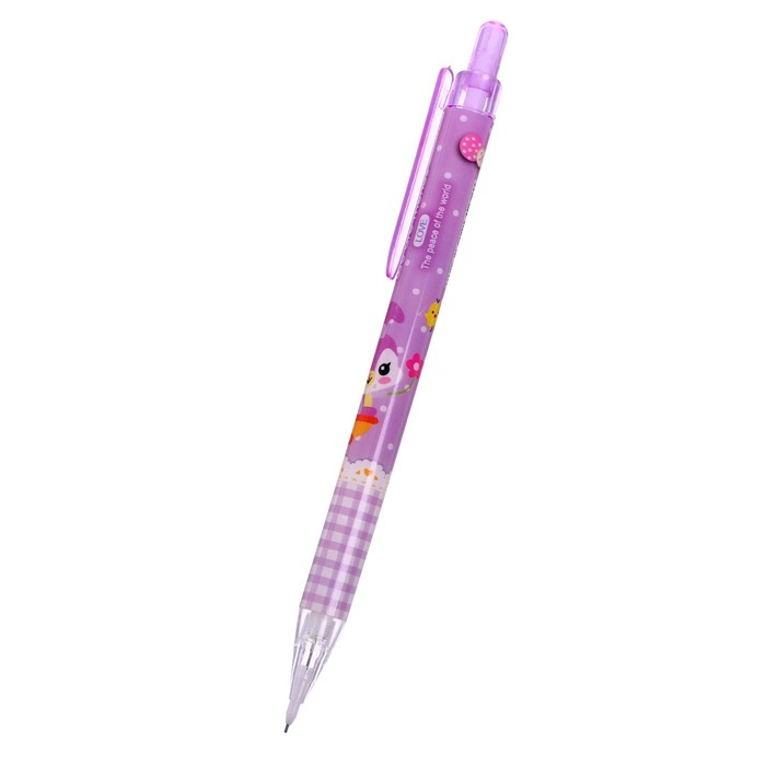 Корпус МИКС.Диаметр грифеля - 0,7 мм.Твёрдость - HB.Материал корпуса-пластик.Направляющий механизм грифеля выполнен из металла.Подача грифеля осуществляется с помощью кнопочного механизма.