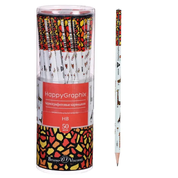Карандаш чернографитный 2 мм Happy Graphix "Жирафы", НВ, трёхгранный — Характеристики