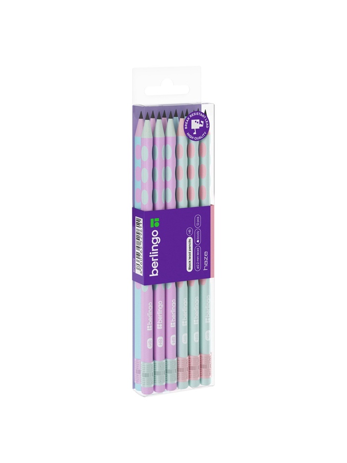 Карандаш чернографитный Berlingo Haze HB, заточенный, трехгранный, с ластиком, МИКС — Характеристики