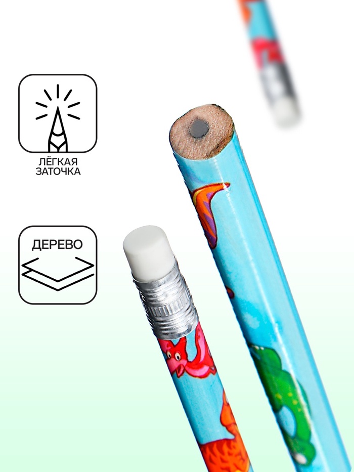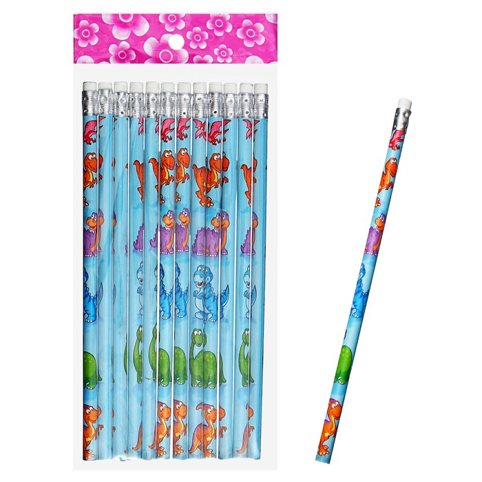 Карандаш чернографитный Calligrata «Динозаврики», НВ, с ластиком, корпус круглый — Характеристики