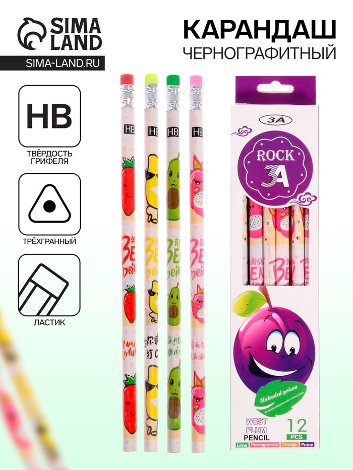 Пластиковый чернографитный карандаш с ластиком эконом уровня.