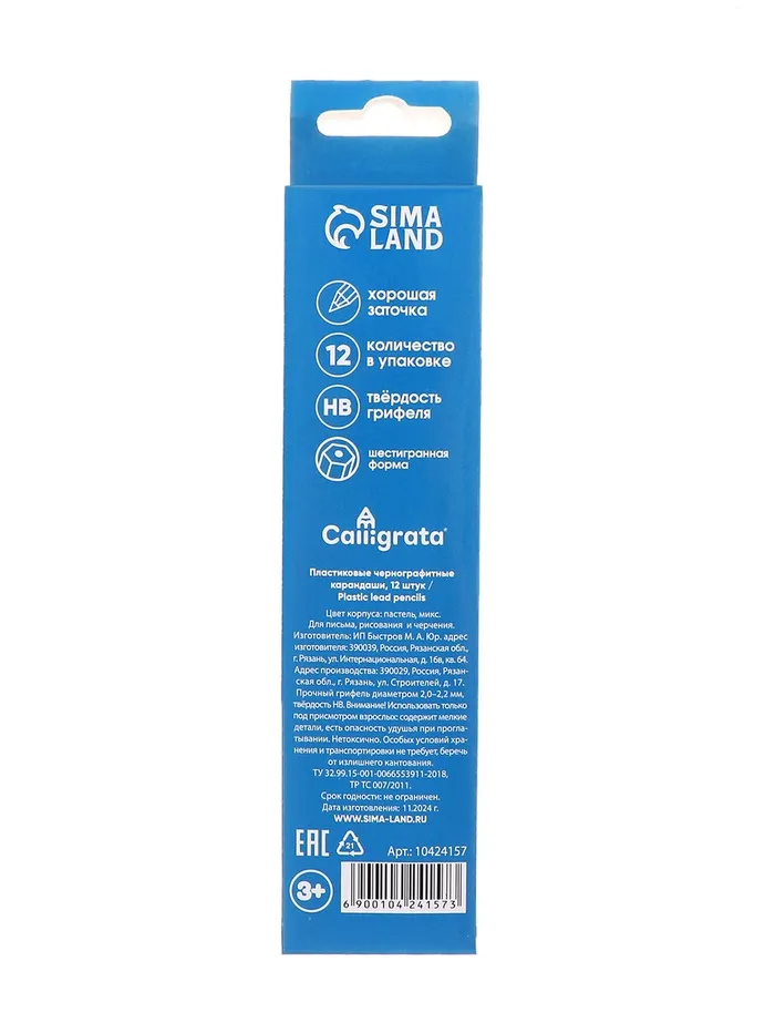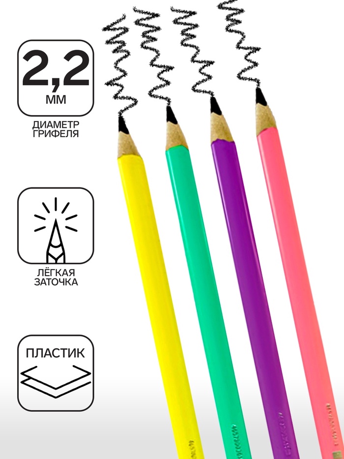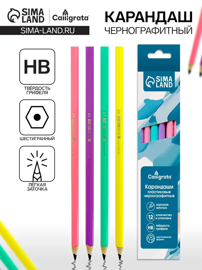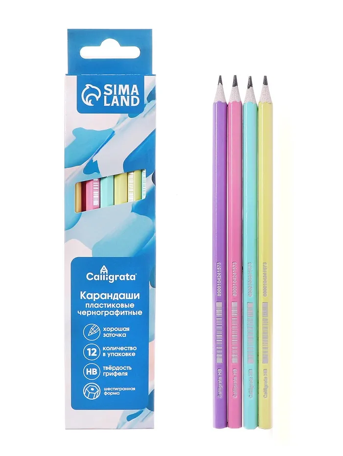 Материал корпуса: пластикФорма корпуса: шестиграннаяНаличие ластика: нетЗаточено: даДлина: 175 ммЦвет корпуса пастель: миксДиаметр грифеля: 2 ммУдаропрочный грифель: нетУпаковка ед. товара: отсутствуетНаличие европодвеса: даНаличие штрихкода на ед. товара: естьДиаметр корпуса: 7Вид минимальной групповой упаковки: картонная коробка по 12 штукЭКОНОМ сегмент: да