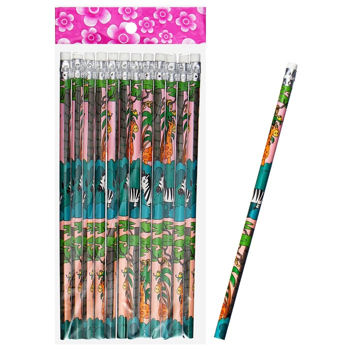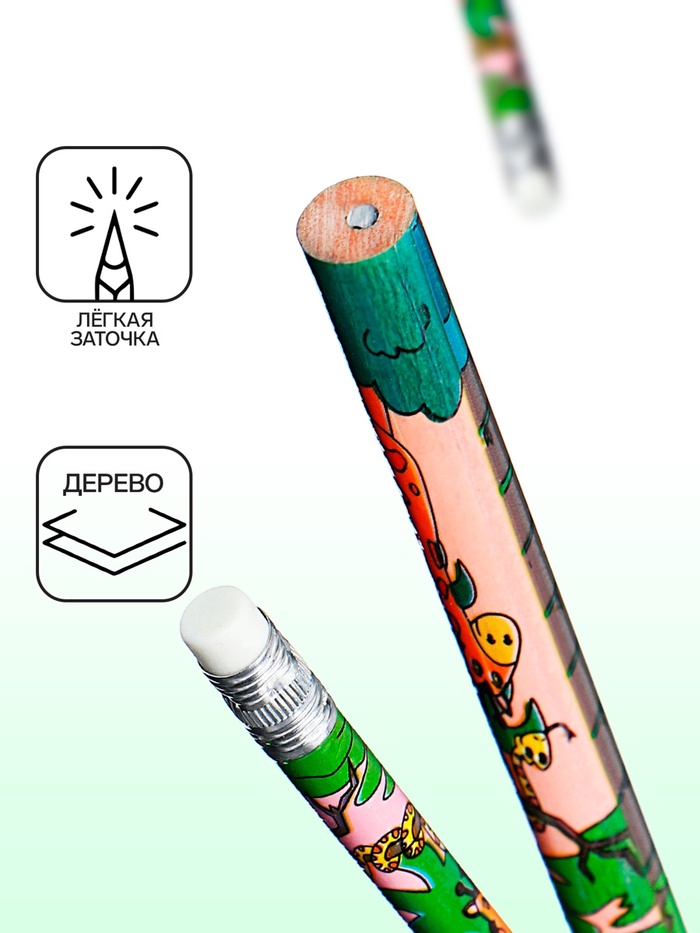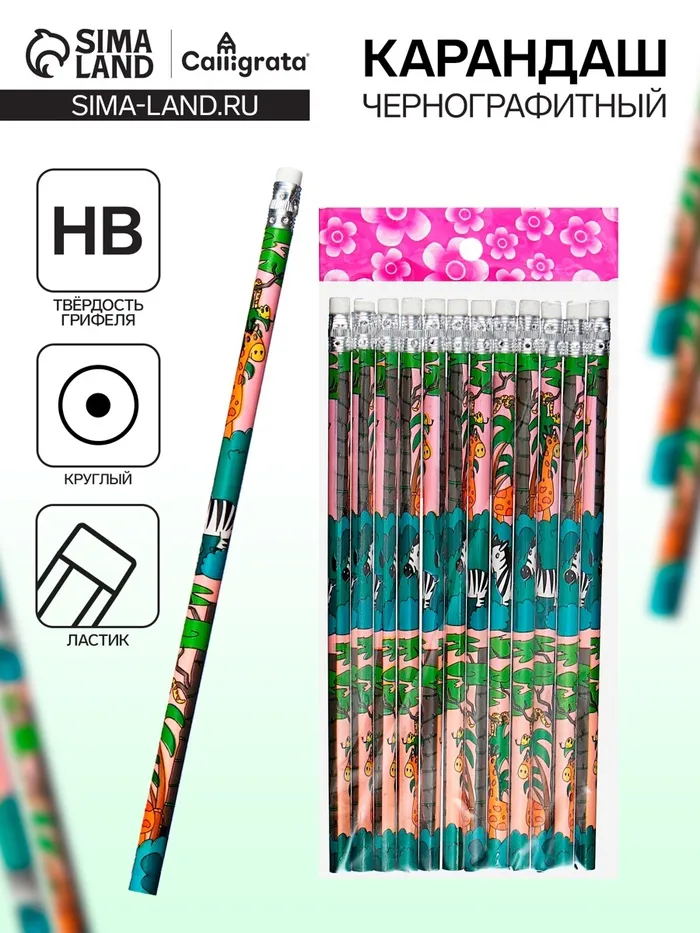 Карандаш чернографитный Calligrata «Зверушки», НВ, с ластиком, корпус круглый — Характеристики