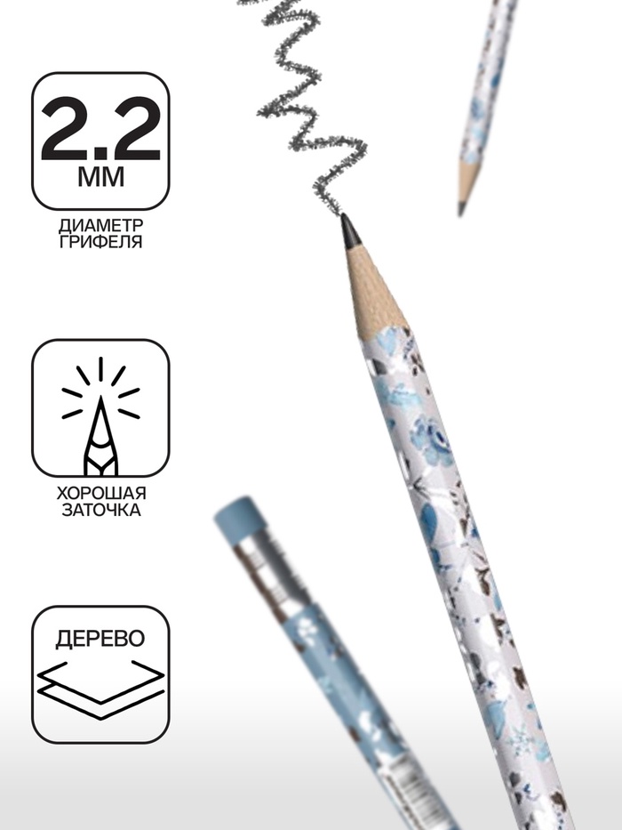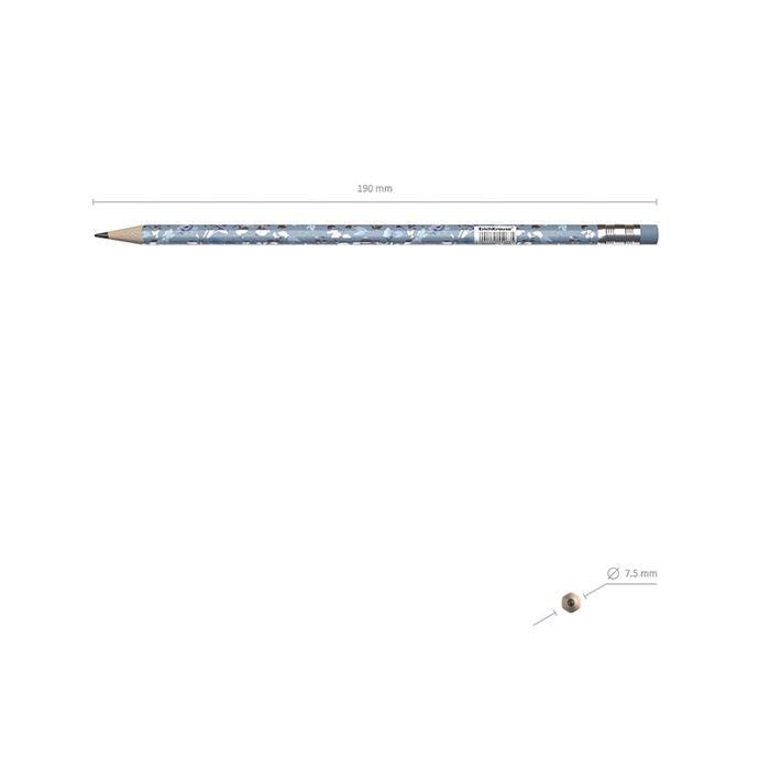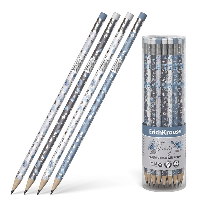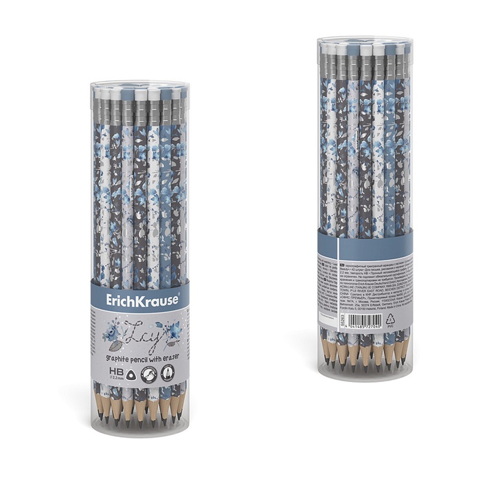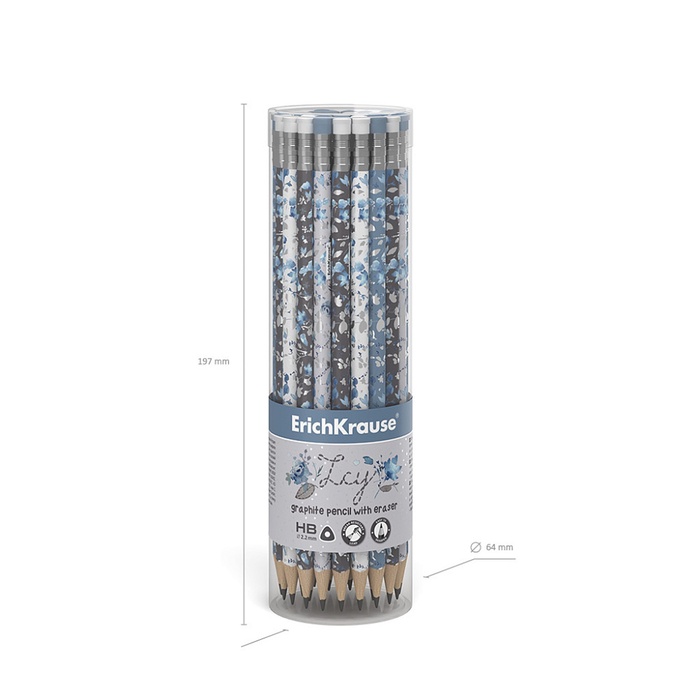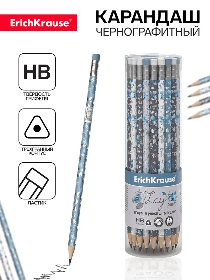 Карандаш чернографитный, ErichKrause «Frozen Beauty», с ластиком, HB, d=2.2 мм, дерево, трехгранный с принтом, в тубусе, микс — Характеристики