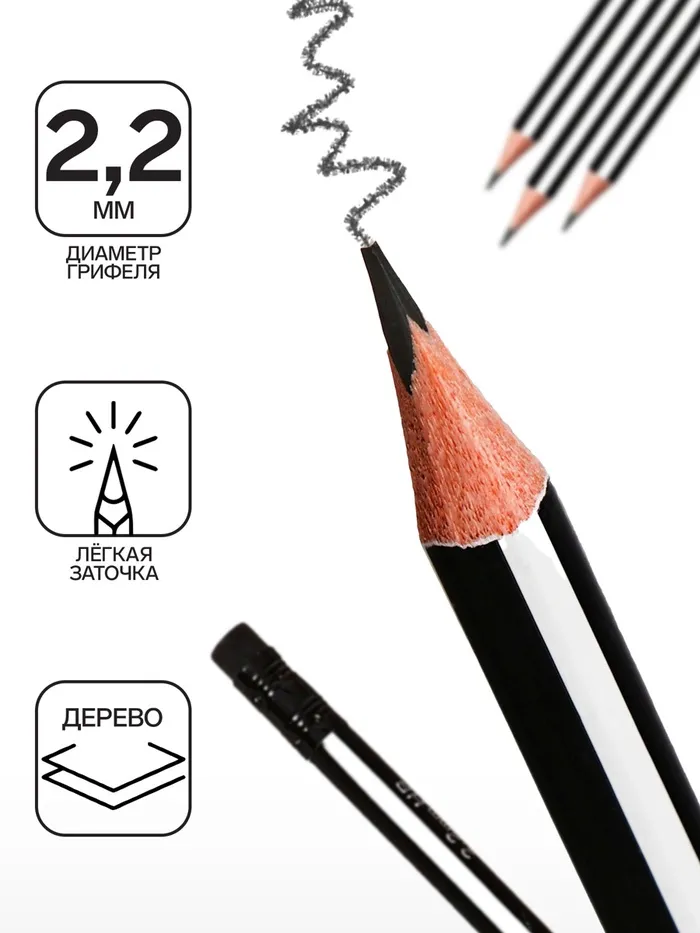 - Мягкая древесина и идеальная центровка грифеля гарантируют легкую заточку с экономным расходом карандаша.