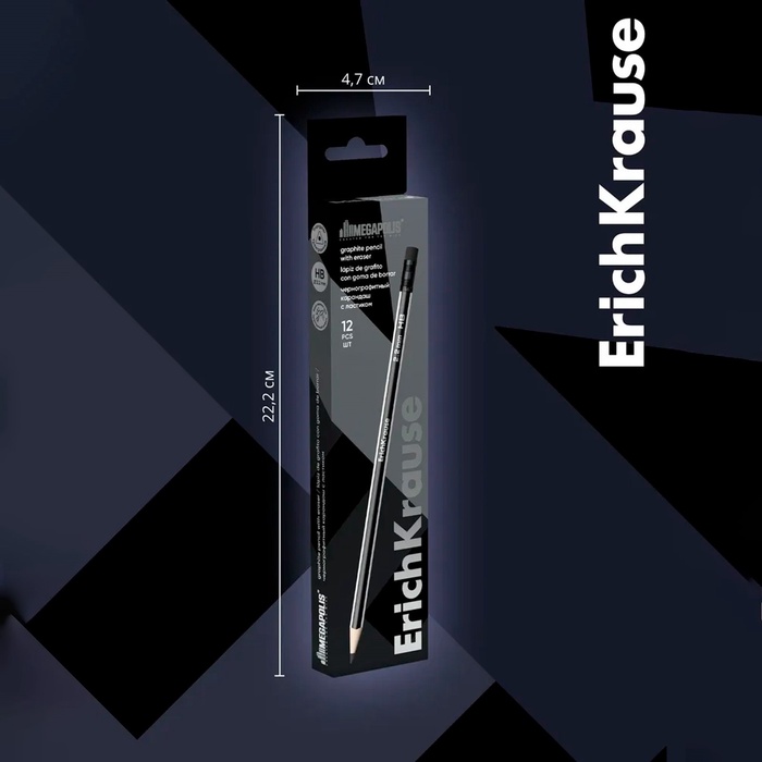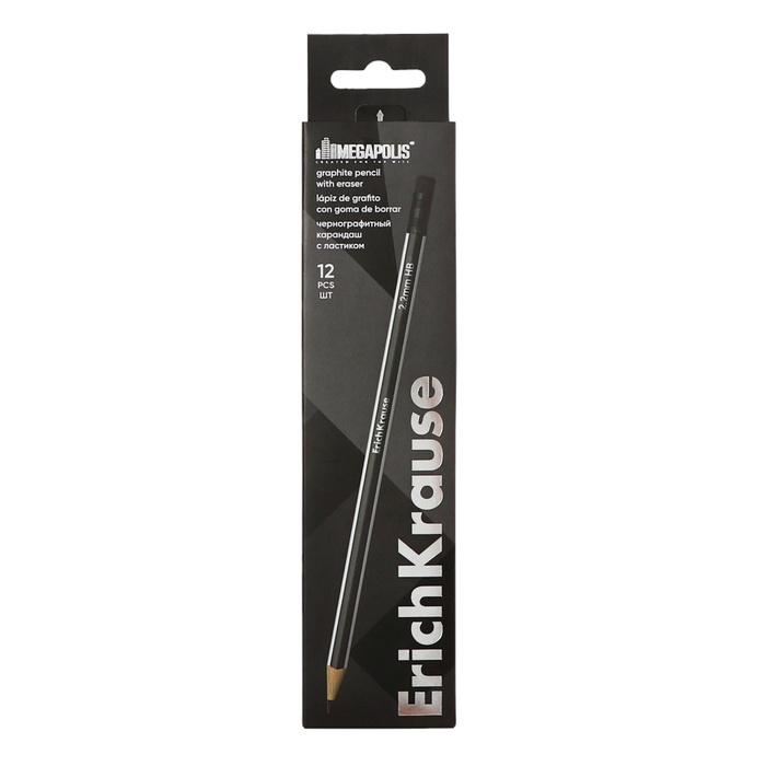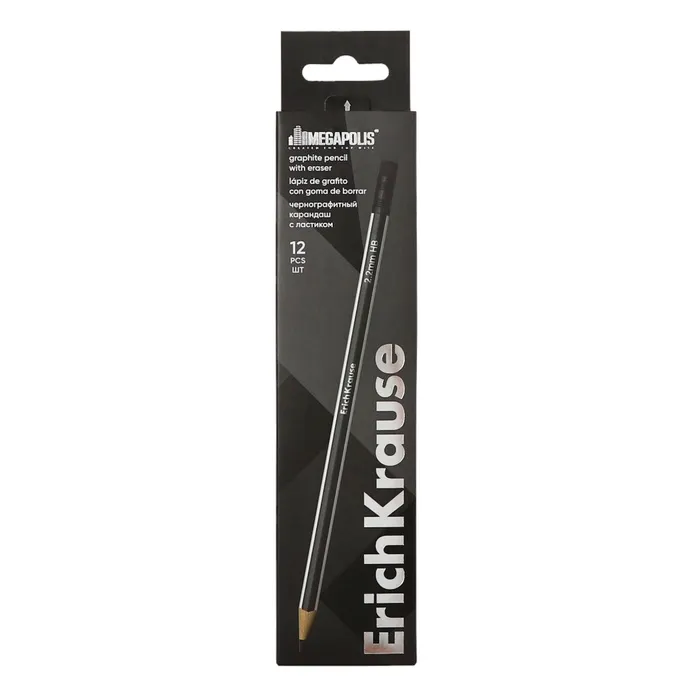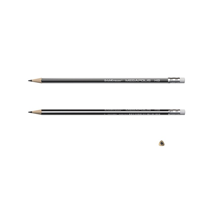 Карандаш чернографитный, ErichKrause «Megapolis», HB, d=2.2 мм, с ластиком, трёхгранный в коробке, дерево — Характеристики