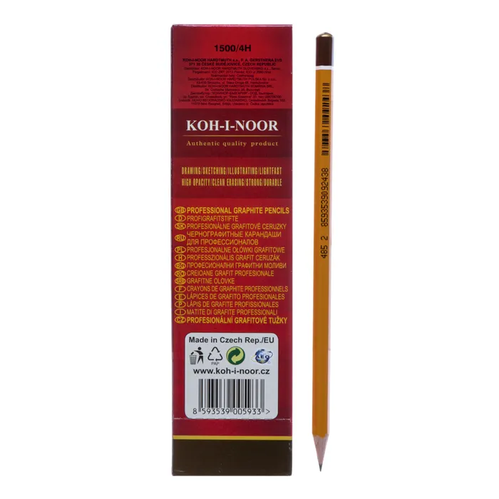 Профессиональный карандаш Koh-I-Noor серии 1500 - наиболее известная модель фабрики. Изготавливается компанией более 120 лет. Модель легко узнаваема благодаря неизменному жёлтому покрытию и позолоченной надписи. Грифель карандаша мягкий и прочный. Оставляет яркий и насыщенный след. Корпус изготовлен из прочной древесины. Это делает карандаш очень удобным при работе с чертежами, графикой и художественными рисунками.
